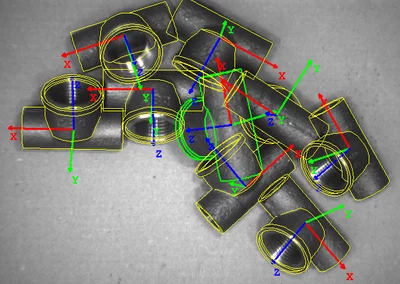 Matching also works in 3D. Perspective matching, for example, is an advancement of shape-based matching that allows the position of flat object parts of any shape to be determined in 3D space.