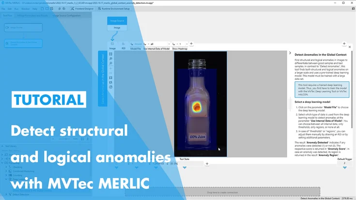 In this tutorial, you will learn how to use MVTec MERLIC’s “Detect Anomalies in the Global Context”-Tool, which features MVTec’s state of the art technology Global Context Anomaly Detection. This tool allows MERLIC users to detect logical and structu…