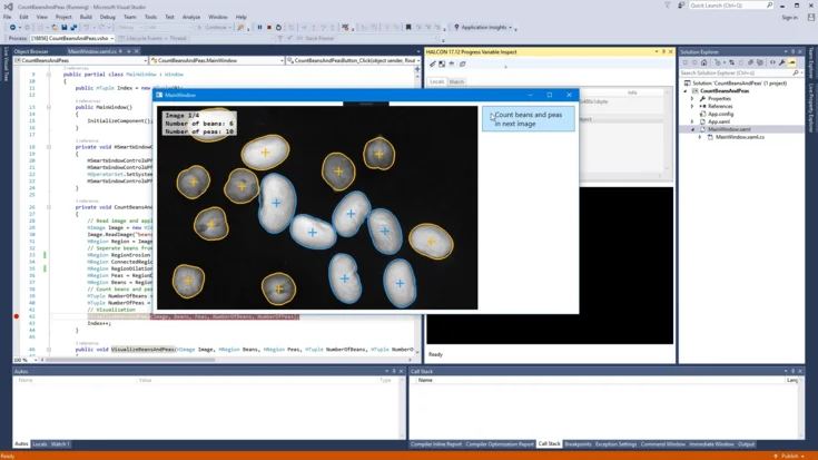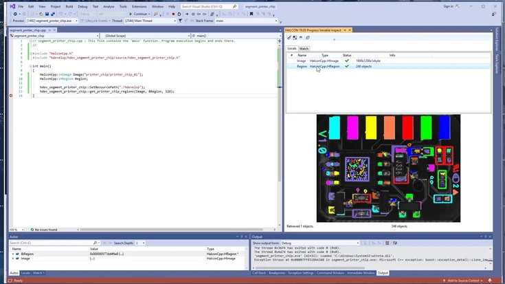 Use HALCON Variable Inspect in Visual Studio to view images, regions, and variables from your HALCON code instantly.