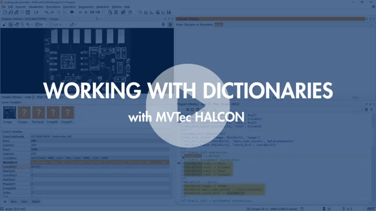 MVTec’s HDevelop tutorial: read and use iconic vs. control variables. Use tuples and arrays to avoid loops. Includes a sample program download.