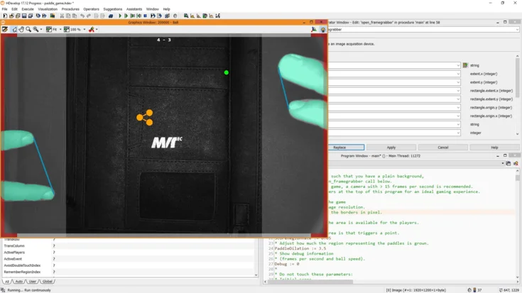 Built during MVTec’s creative “woikn-days,” this fun example turns machine vision into a virtual game.