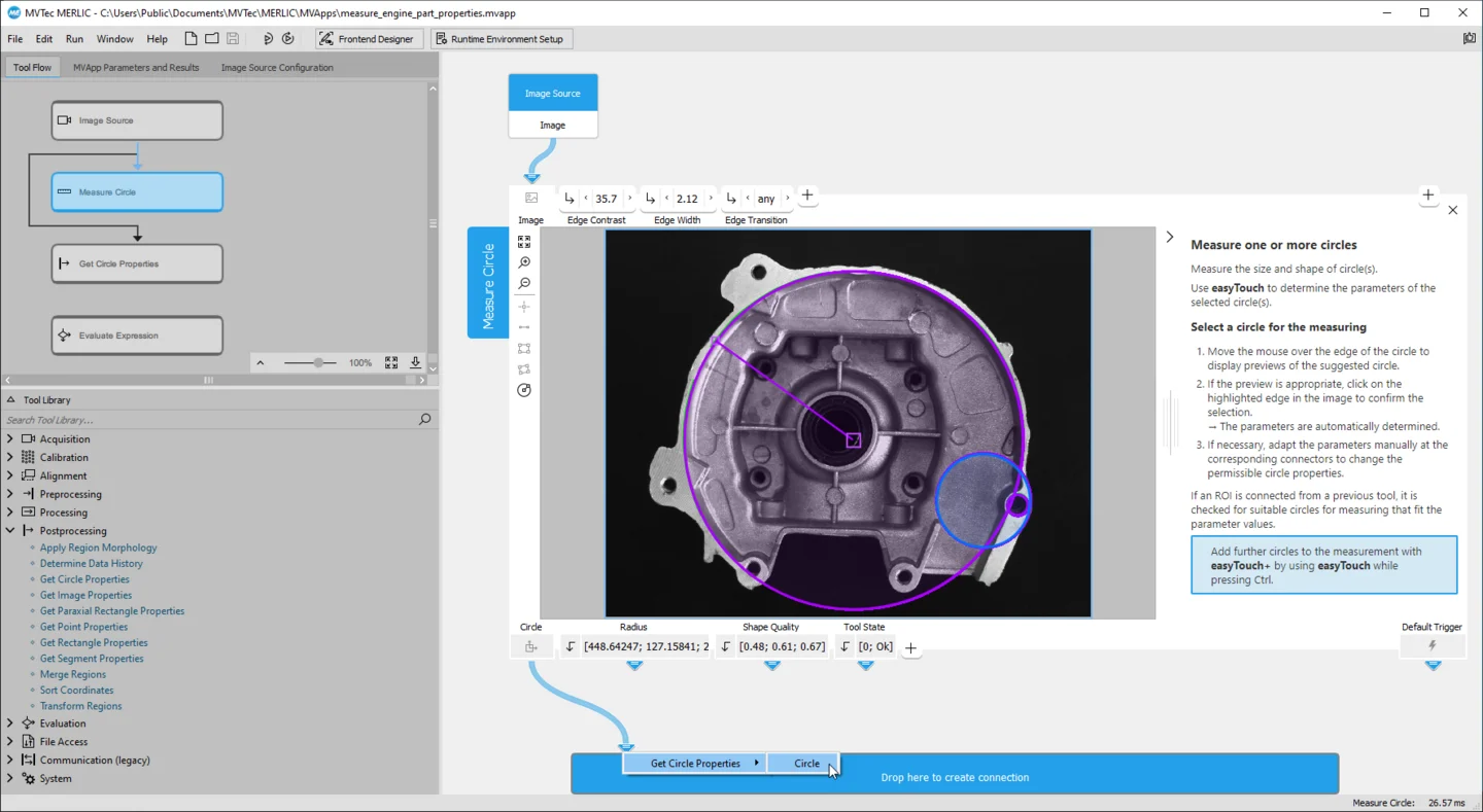 MERLIC includes a broad set of ready-to-use tools for common vision tasks like matching, measuring, and deep learning. All tools are task-oriented and can be extended with custom tools built in HALCON’s HDevelop for maximum flexibility.